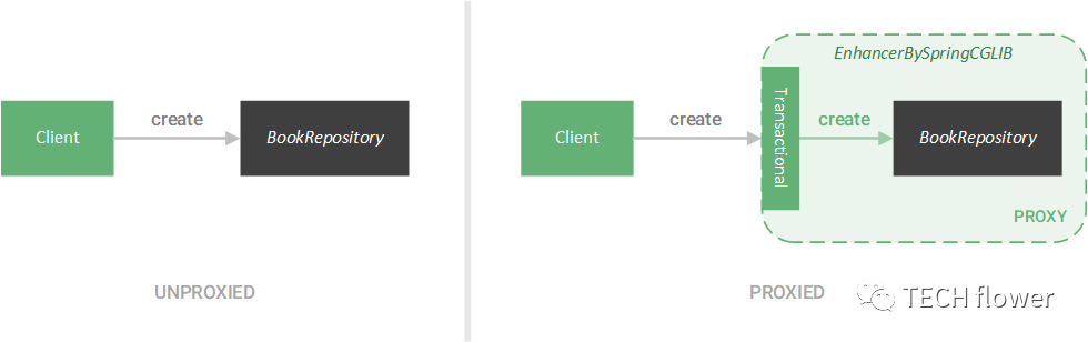 在后台,Spring将我们的BookRepository对象包装为EnhancerBySpringCGLIB对象。Spring因此控制对BookRepository对象的访问(确保事务一致性)。