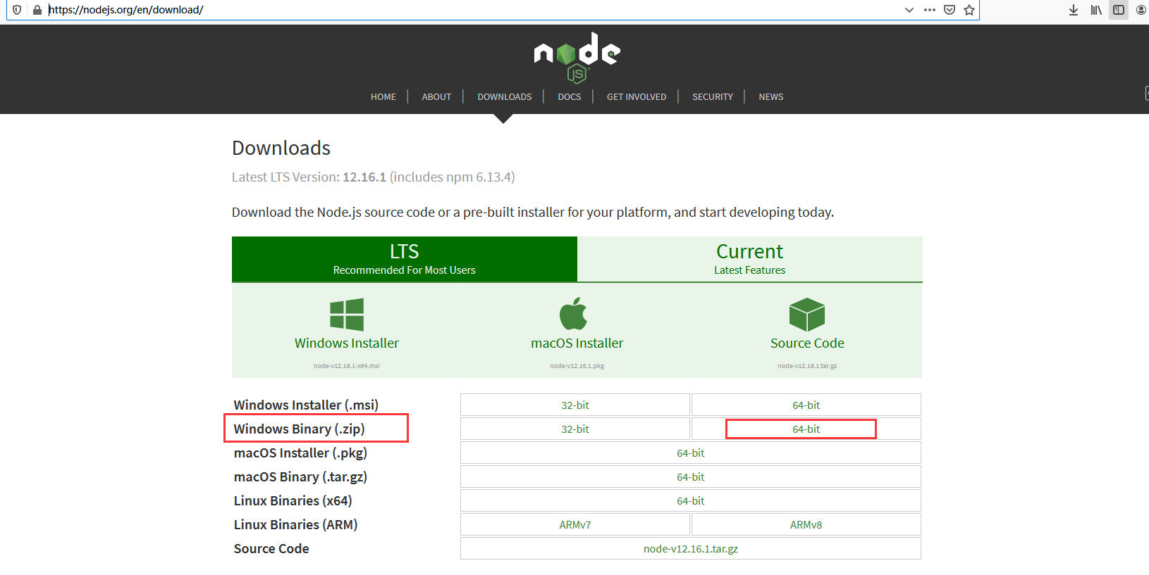 1.nodejs环境配置:①官网下载路径:https://nodejs.org/en/download/