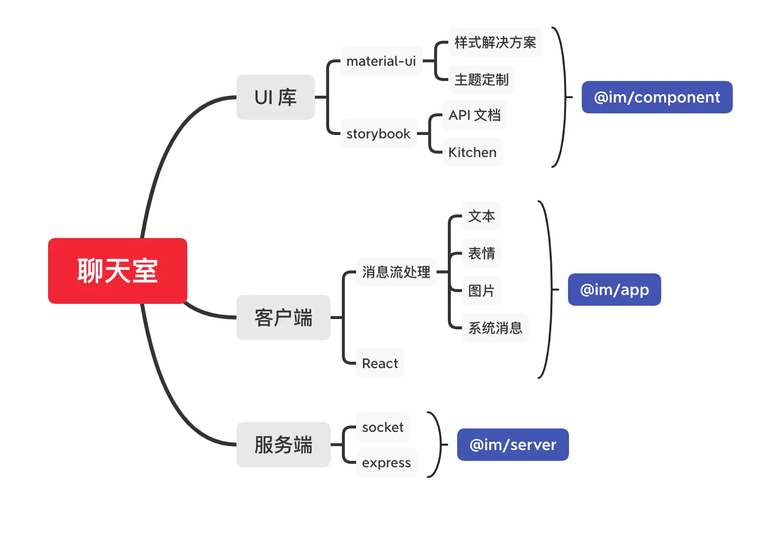 整个聊天室项目采用的是多包管理模式,所以在开发时我们会直接通过 lerna link 命令来创建软连接,因此可以不必通过发布包来完成依赖的使用。