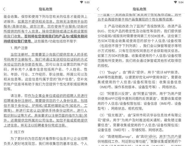 在新的隐私政策文档中,拉勾招聘列明了用户信息的用途,第三方的授权也进行了相应的表述。坦率地讲,对于一个招聘类的 App 来讲,个人信息的索取和使用尤为频繁,因此一份简明扼要的隐私政策对用户而言自然也很重要。