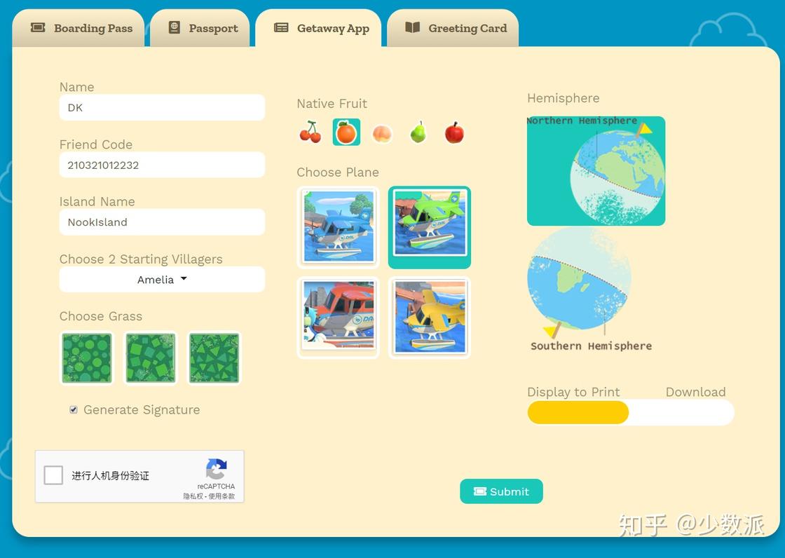 Dodo Airlines 是《动森》里航空公司的名字,他们有两只可爱的渡渡鸟员工,国外 Reddit 的网友非常喜欢他们,并为 Dodo Airlines 制作了这个特别的小站。你可以在这里生成一张虚拟的 Dodo airlines 机票,假装自己是一个要上岛的乘客。