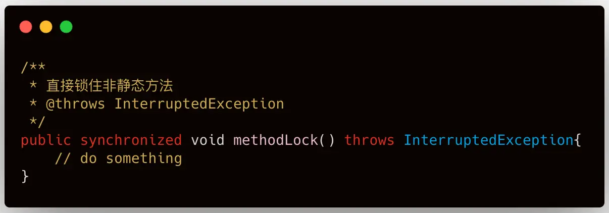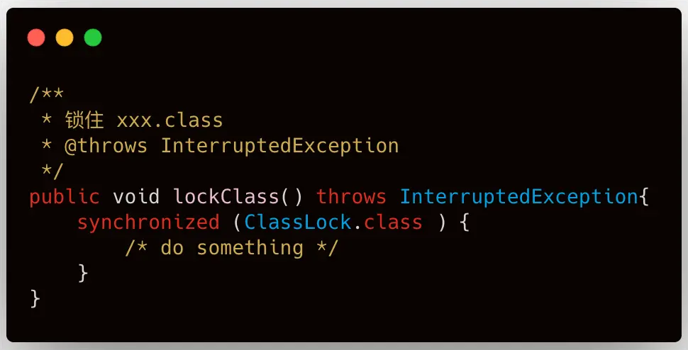 因为静态方法同样也是存在方法区的并且整个 JVM 只有一份,所以加在静态方法上可以达到类锁的目的。