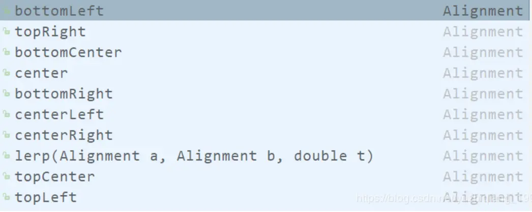 // AlignmentGeometry,用于设置图片的对齐方式,默认值:Alignment.center,可设置的属性如下: