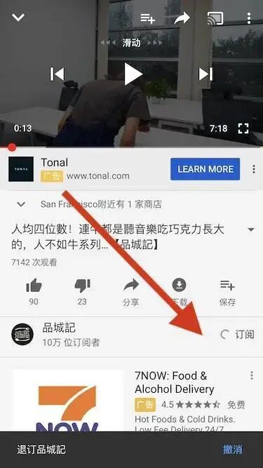 我们以一个实际的app例子开始,让我们看看youtube的app退订频道功能: