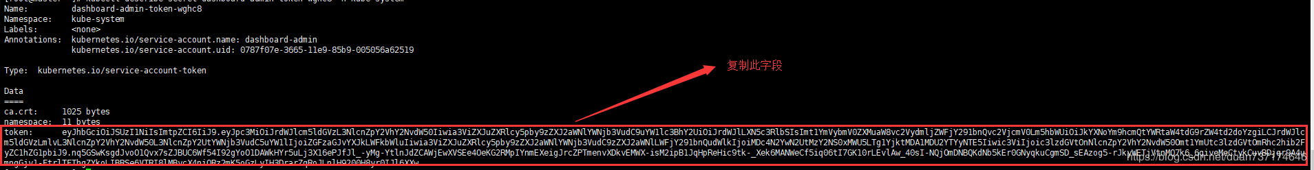 kubectl describe secret dashboard-admin-token-wghc8 -n kube-system