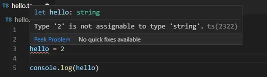 上面例子中我们给 hello 参数指定了 string 类型,编译成 JavaScript 时,检查的代码并不会被插入到 js 文件中。