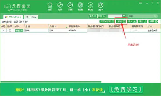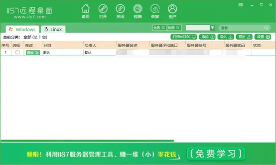 首先下载解压软件,因为本软件是绿色软件,免安装,所以解压后直接双击“IIS7 远程桌面管理.exe ”就可以看到程序的主界面了: