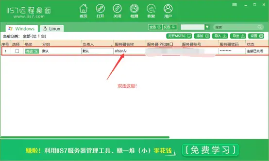 添加完毕核对无误后就可以点击右下角的添加,就可以看到添加的服务器信息,双击就可以打开啦!