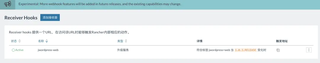 Receiver hooks 提供一个URL,在访问该URL时能够触发Rancher内部相应的动作。