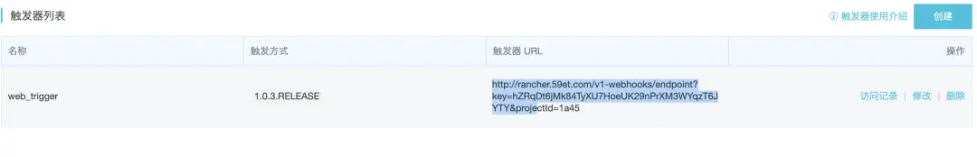 点击 创建。创建成功后,就可以在新创建接收器钩子旁边看到相应的URL。