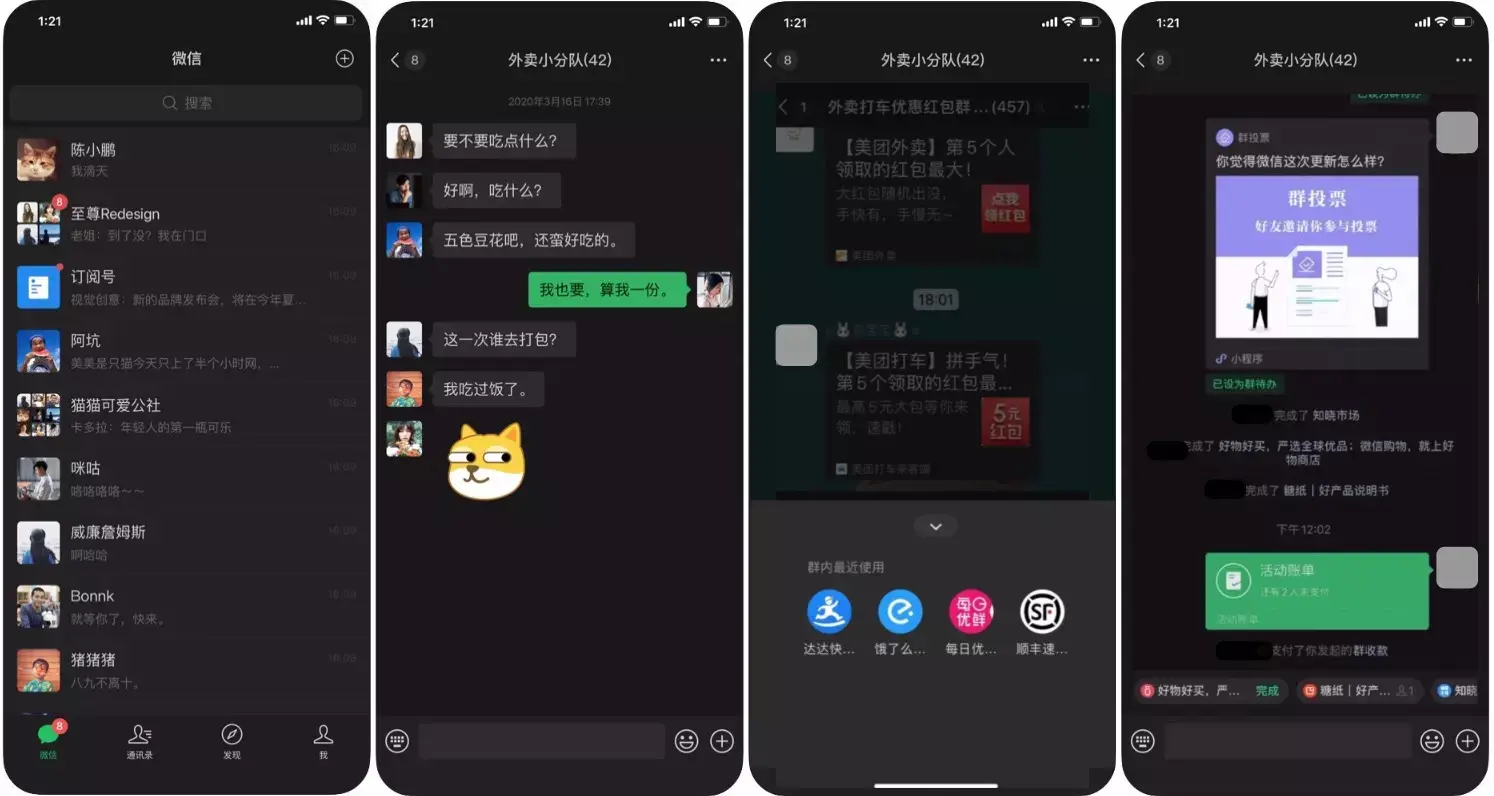 3月22日上午,微信iOS新版7.0.12 发布,上线了万众期待的「深色模式」。
