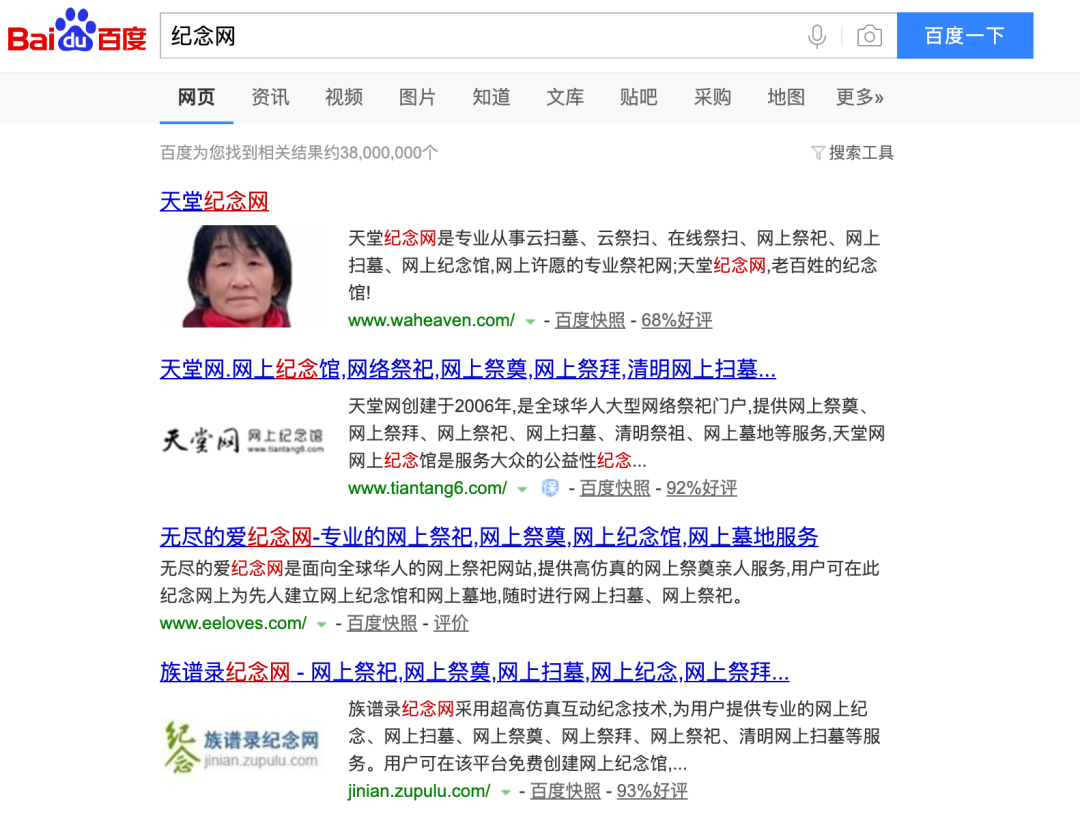 搜索“纪念网”、“网上纪念堂”等关键字,能看到不少线上提供网上祭祀服务的网站。