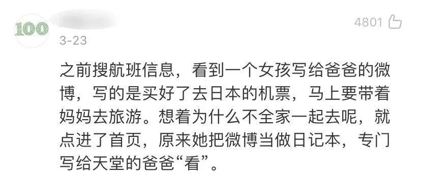 此外,也有人在微博纪念死去的亲友。有一次博主@凉了个蝉 分享误入其他人微博的经历,有几条评论令人动容:
