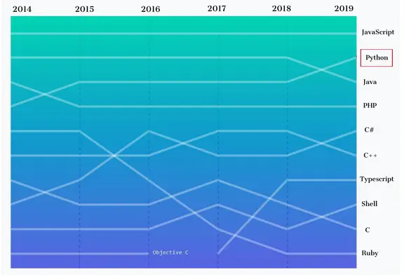 另外,根据 GitHub 库的贡献度,Python 已经超越了 Java,成为世界第二受欢迎的语言。Stack Overflow 将 Python 称为「成长最快」的主流编程语言。