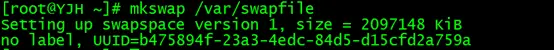 [root@YJH ~]# dd if=/dev/zero of=/var/swapfile bs=1G count=2