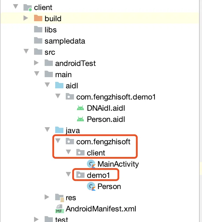 服务端app的Person.java粘贴至client端app的"demo1"路径下