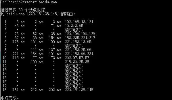在linux平台上可以使用traceroute 命令最终信息的传输过程,计算每一跳所需要的时间,window就通过tracert命令。