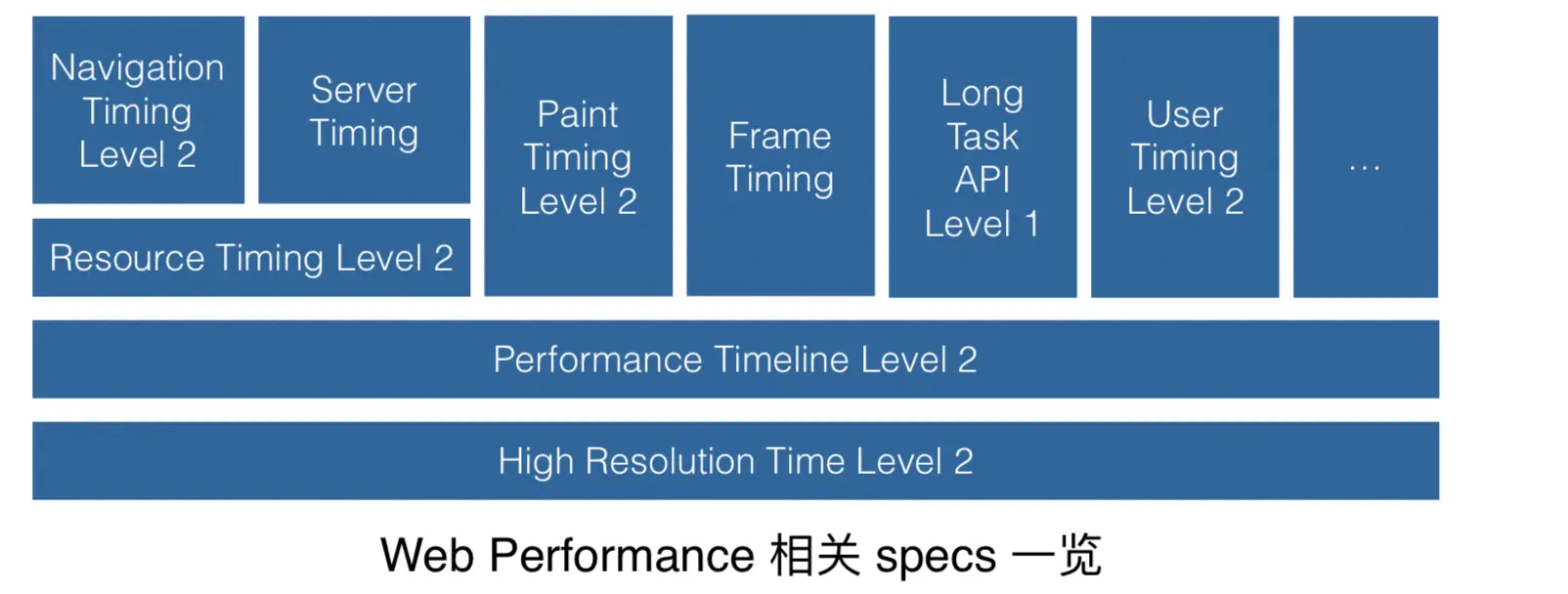 有很多文章在介绍前端性能监控时,将performance对象固化了,W3C组织提供了更为全面的性能分析矩阵,像performance.timing这样强大的API已经被废弃,现在的performance接口是High Resolution Time API的一部分,同时也融合了Performance Timeline API、Navigation Timing API、User Timing API和Resource Timing API。