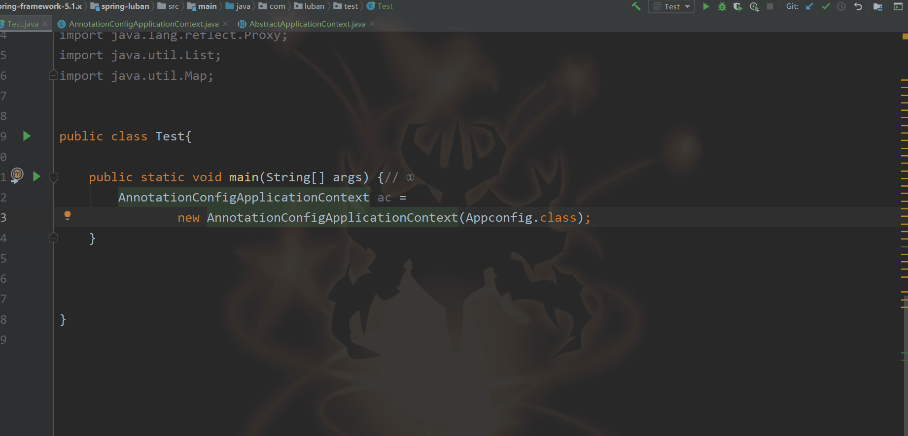 针对AnnotatedBeanDefinitionReader应用场景的第2点,我在啰嗦几句,一般程序员在初始化spring容器的时候代码有很多种写法,但都是换汤不换药的,我这里举2个栗子。 第一种写法:
