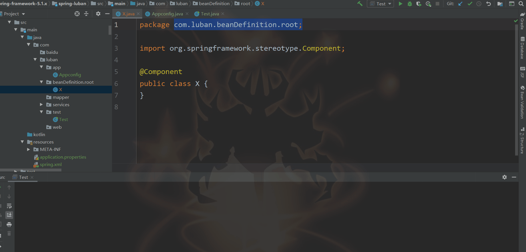 那么AnnotatedBeanDefinitionReader除了动态显示注册一些spring扫描不到的类之外还有什么功能?在初始化spring容器的过程中他主要干了什么事情呢?或者这么说:假设程序中没有需要动态显示注册的类他就没用了吗?再或者AnnotatedBeanDefinitionReader这个类的对象除了注册一些自己的类还有什么应用场景呢?——注册我们的配置类,对于不理解是什么配置的读者可以理解所谓的配置类就是那个加了@Configuration和@ComponentScan的那个类,也就是Appconfig.java; 那么问题来了,为什么配置类需要手动注册呢?很简单因为配置类无法扫描出来,所以需要我们手动注册。为什么无法扫描呢?比如spring完成扫描是需要解析Appconfig.java当中的@ComponentScan注解的值(一般是一个包名),得到这个值之后去扫描这个值所代表的包下面的所有bean;简单的说就是spring如果想要完成扫描必须先提供Appconfig.java,所以Appconfig.java要在一开始就手动注册给spring,spring得到Appconfig.class之后把他解析成BeanDefintion对象,继而去获取@ComponentScan的值然后才开始扫描其他bean;
