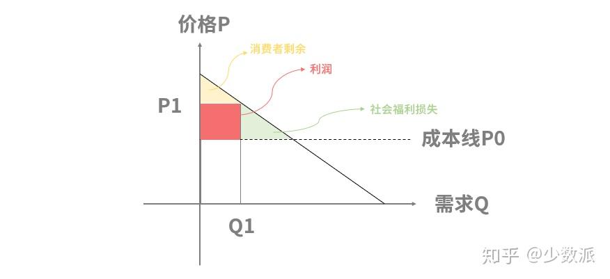 但这样的定价方式,商家并不能实现利润最大化,因为存在消费者剩余(支付意愿更高的富人,上方图片黄色区域)和社会福利损失(支付意愿更低的穷人,上方图片绿色区域),所以为了解决这种情况就会采用一种「价格歧视」手段,让企业在不低于成本线的基础上,让消费者剩余最小化,即将富人和穷人区分开来,分别进行收割。(注:这里的富人和穷人并非单指经济情况,还指消费者对待同一个商品时支付意愿的高低)