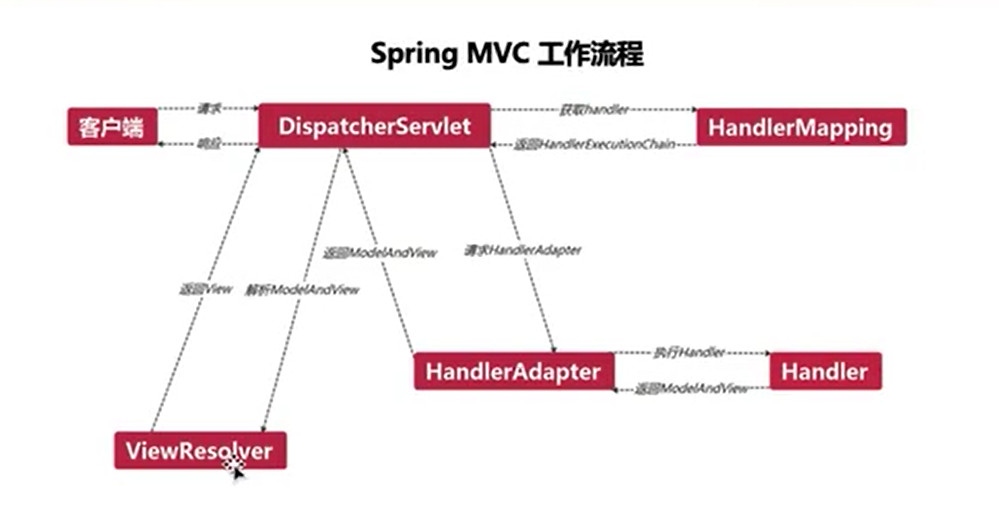 - HandlerMapping:DispatcherServlet 接收到请求之后,通过 HandlerMapping 将不同的请求映射到不同的 Handler。