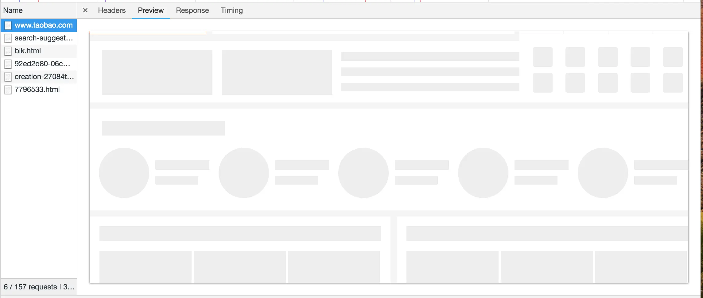 我们看到,这个还没来得及被图片填充完全的网页,是用大大小小的空 div 元素来占位的。掘金首页也是如此。