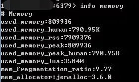 在客户端通过redis-cli连接服务器后(后面如无特殊说明,客户端一律使用redis-cli),通过info命令可以查看内存使用情况
