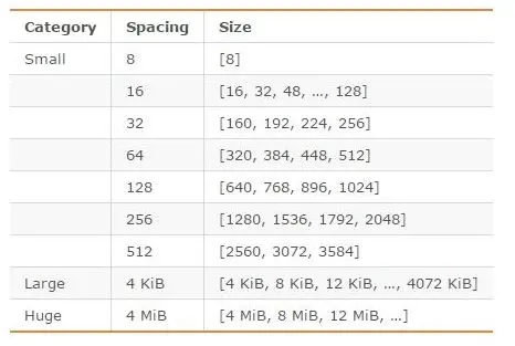 jemalloc划分的内存单元如下图所示: