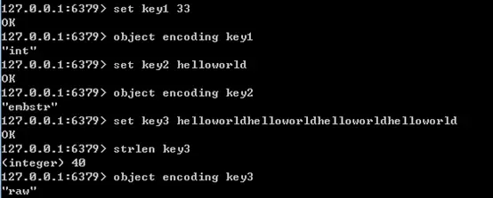 通过object encoding命令,可以查看对象采用的编码方式,如下图所示: