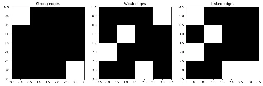 至此,就是双阈值检测的部分,乍一看仿佛与单一阈值没有区别,只要高于低阈值就能作为弱边缘,那这么一来好像跟单阈值就没什么区别了。诚然,如果缺少了“边缘连接”这下一步骤,双阈值和单阈值的本质确实是一样的。