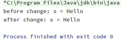 System.out.println("after change: s = "+s);