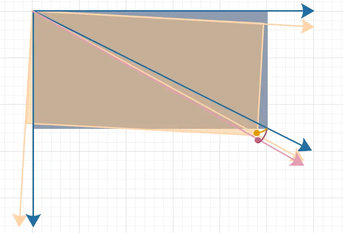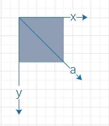 我们先不看x轴和y轴,我们直接看由他们两个共同决定的轴,为了方便称呼, 我们将矩形右下角和起点连接而成的轴称为a轴。如下: