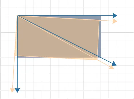 但是如果先scale就不一样了,这里把x轴放大两倍,y轴不变,然后旋转1度(假装是1度):