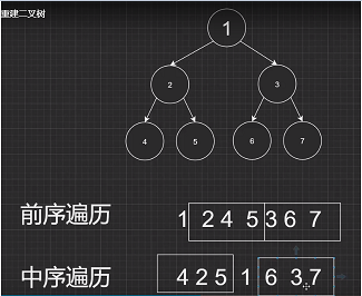 首先分析,前序遍历第一个数字就是根节点,这时候你去中序遍历中找到该数字,那么依据中序遍历原则,在这个数字左边的就是该树的左子树,在这个数字右边的就是该树的右子树。