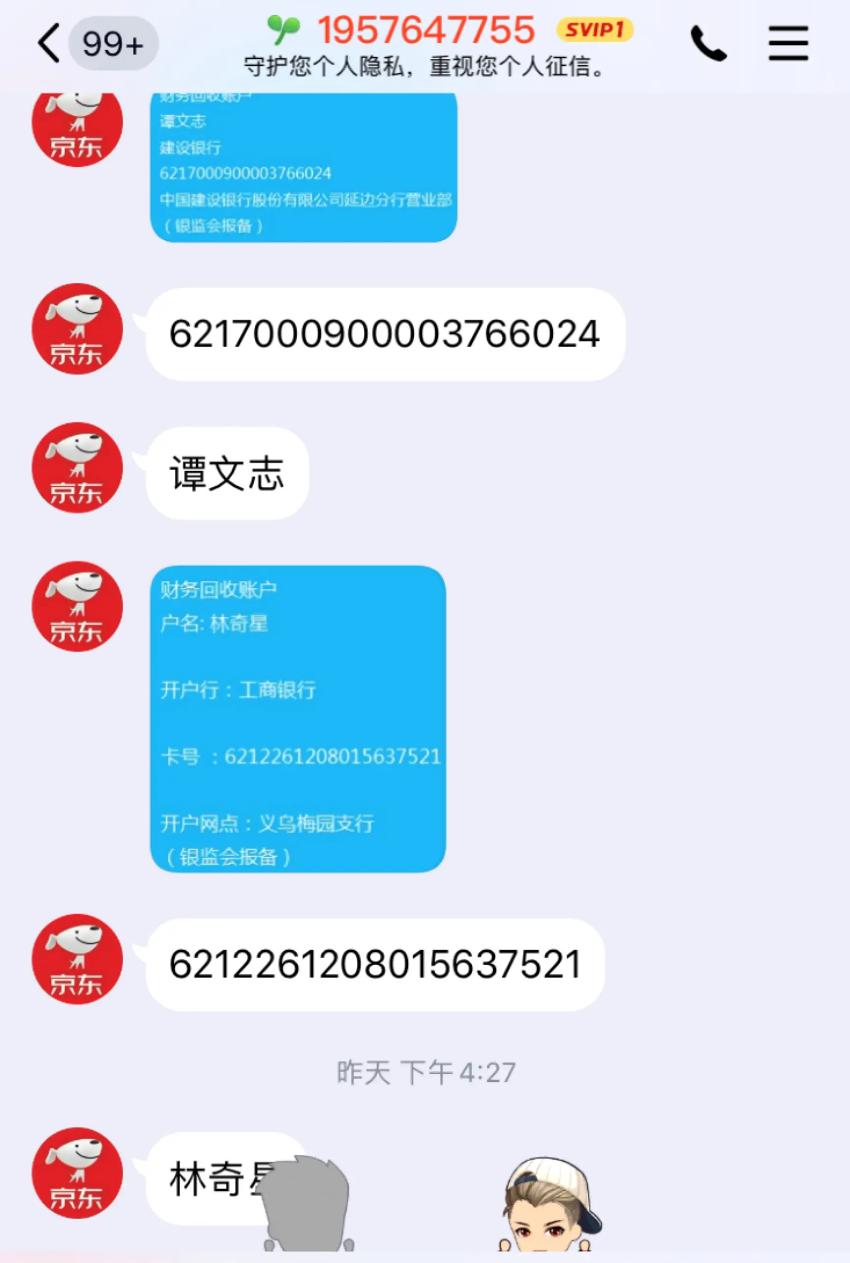 发证件证明是京东金融客服身份