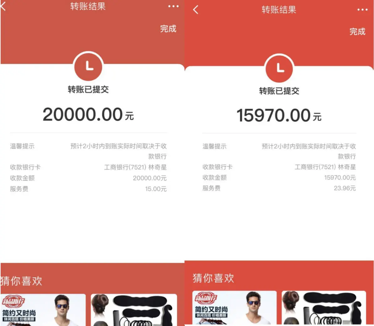 客服说京东最高转账额度是 2W,分 2 次转,第一次转 2W 并且垫付了 15,第二笔因为多了服务费,就少交了 30 元的服务费,并声称注销完成后会将垫付的差额退回。