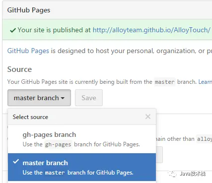 选择完master branch之后,master自动变成了网站。master所有的提交会自动更新到网站。