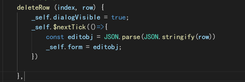 使用$nextTick再执行赋值注意:这里的editobj变量是为了解除数据的双向绑定因为如果不这样做会出现你更改编辑框数据页面会立即同时发生变化(是在你没有点击确认更改的时候也就是说你一边改,页面一边发生变化)