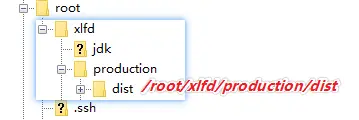 假定/root/xlfd/production是一个工作区,下面还会有其他一些项目的待部署资源。