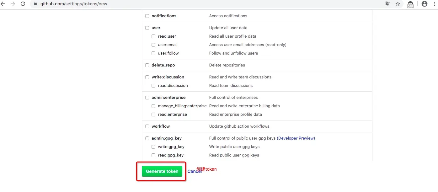 命令需要三个参数,github用户名(jack),第一步生成的token(12345),仓库名称(exampleRepo)