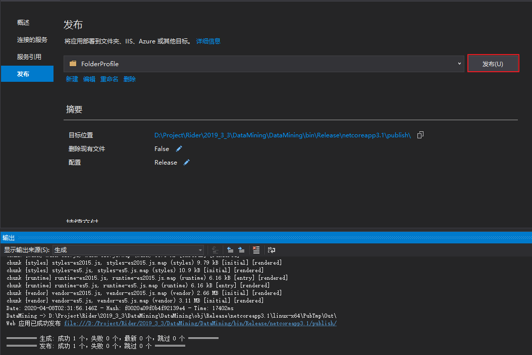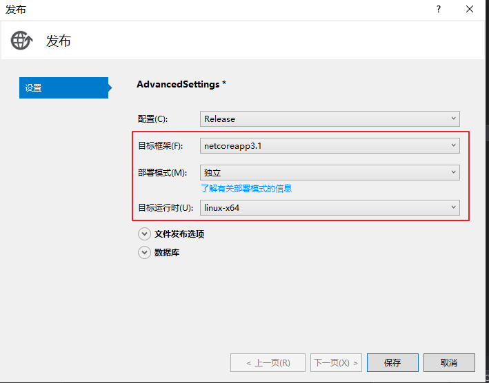 - 目标运行时:根据目标服务器的环境选择,当前项目使用linux系统,所以选取linux-x64
