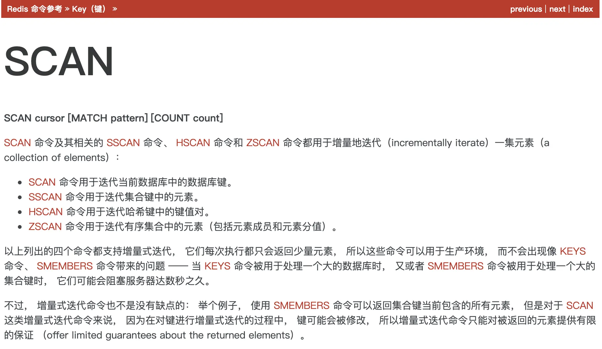 原本以为自己对redis命令还蛮熟悉的,各种数据模型各种基于redis的骚操作。但是最近在使用redis的scan的命令式却踩了一个坑,顿时发觉自己原来对redis的游标理解的很有限。所以记录下这个踩坑的过程,背景如下: