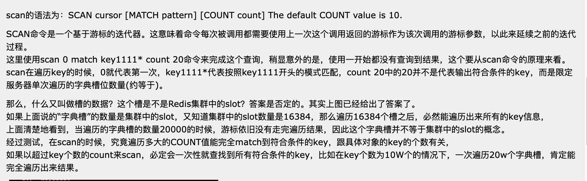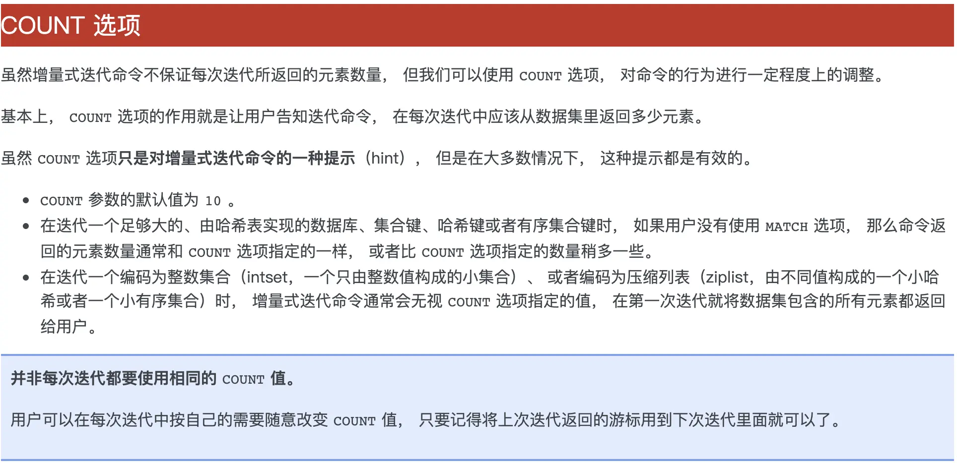 后来经过某个小伙伴的提示,看到了另外一篇对于scan命令count选项通俗的解释:
