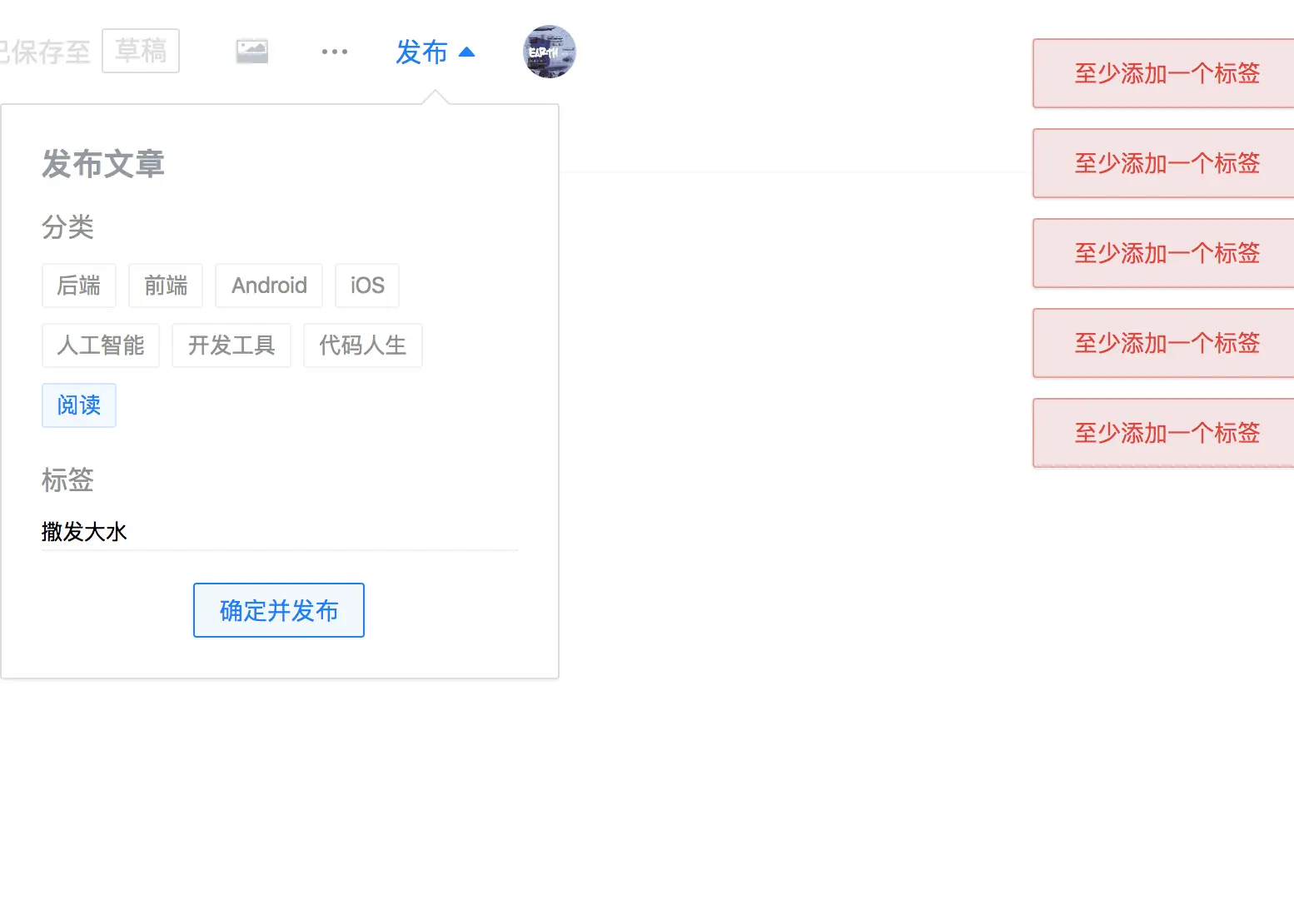 其实挺困惑的,为何点击之后不提供一些常用标签的选择呢,这样可以减少一些交互操作,也可以根据上面选择的分类做一些标签推荐。。