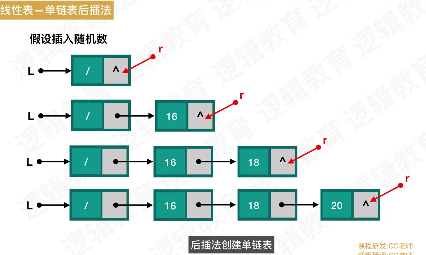 //3.2 后插法整理创建链表L