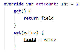 代码中的field在IDE中被加粗显示,这个field被称为backing field,称为幕后字段,因此,可以说明属性Property与字段Field的关系。