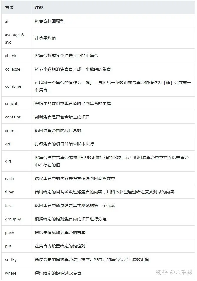 集合通过 Illuminate\Support\Collection 进行实例,Laravel的内核大部分的参数传递都用到了集合,但这并不代表集合就是好的。Laravel作为快捷并优雅的开发框架,是有他一定的道理所在的,并非因他的路由、DB、监听器等等。当你需要处理一组数组时,你可能就需要它帮助你快捷的解决实际问题。