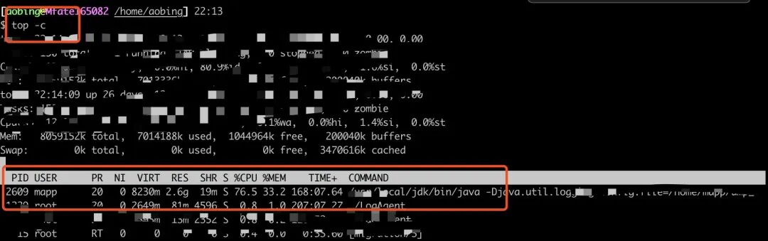 先进服务器,用top -c 命令找出当前进程的运行列表