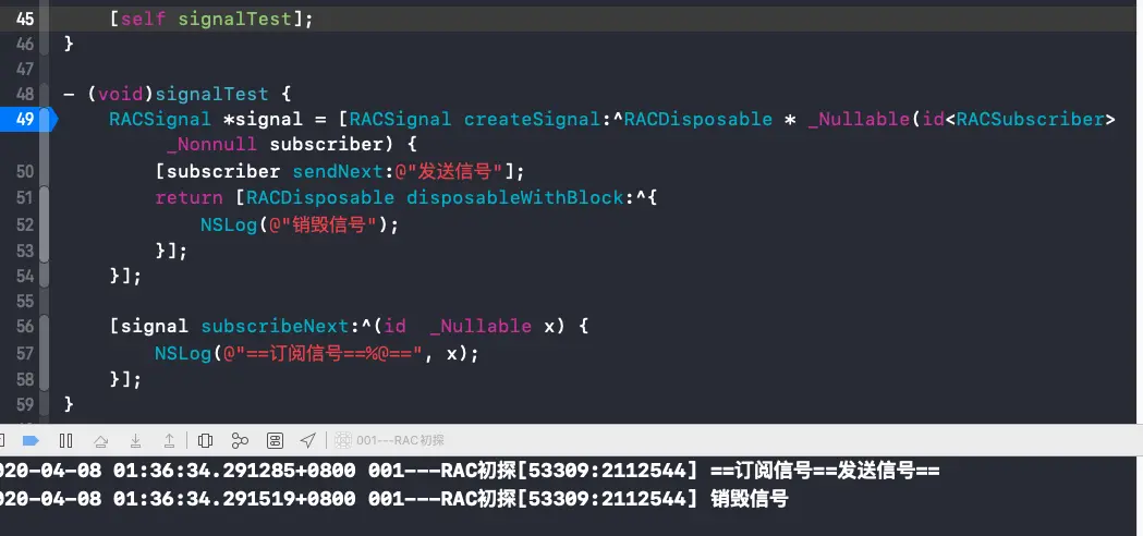 RACSignal *signal = [RACSignal createSignal:^RACDisposable * _Nullable(id<RACSubscriber> _Nonnull subscriber) {